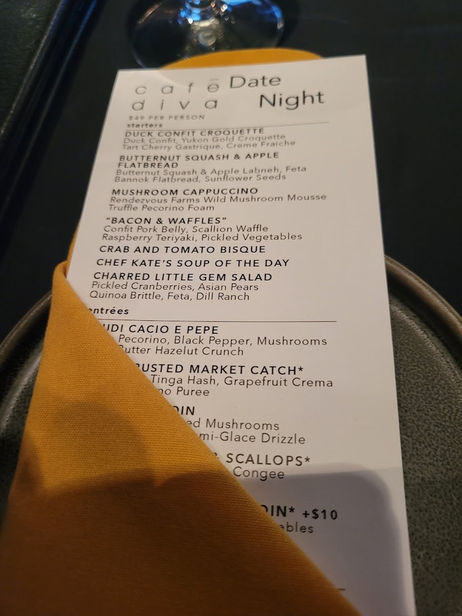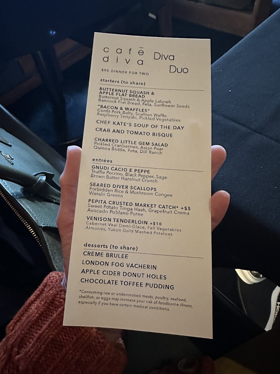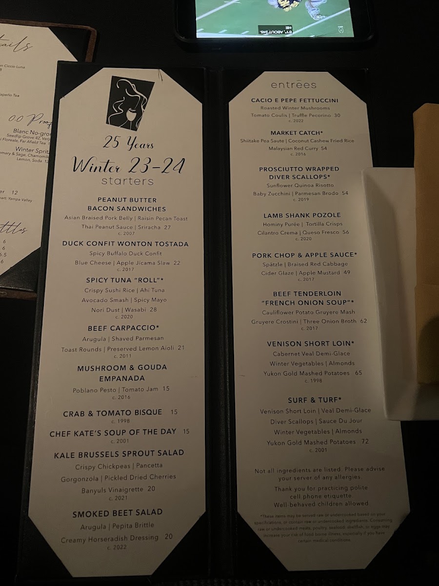 Venison Short Loin, Veal Demi-Glace, Diver Scallops, Sauce du Jour, Fall Vegetables, Almonds, Yukon Gold Mashed Potatoes